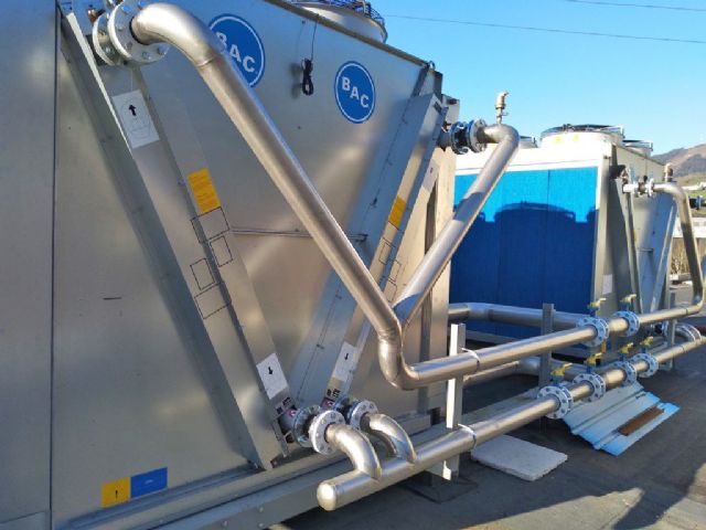 La energía térmica de la refrigeración de los compresores se distribuye por la planta con una red de distribución diseñada a tal efecto hasta el amplio conjunto de puntos de consumo, de diferentes características.