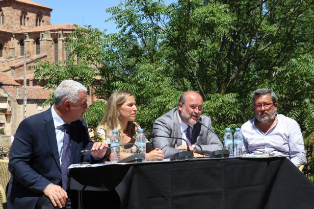 El vicepresidente regional ha avanzado en la presentación que el Ejecutivo está terminando ya el diseño del contrato programa para facilitar la formación a los jóvenes que vive en el medio rural que se incluye en la Ley de medidas contra la despoblación y que busca que las familias no tengan que marcharse de los pueblos cuando uno de sus miembros sale a estudiar fuera de ellos, adquiriendo un compromiso con su territorio: “ o bien volviendo a vivir o invirtiendo una vez que consolide su posicionamiento profesional”, así como la puesta en marcha de un plan de captación de talento “para atraer a los jóvenes de otros territorios y convencer que los municipios de las zonas despobladas de nuestra región son atractivas para vivir”.