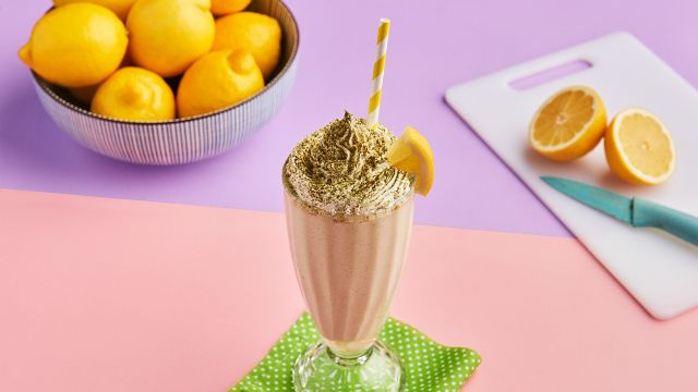 'Milkshake de limón, helado de vainilla y té matcha' y 'Mokaccino de limón y chocolate blanco' son dos batidos refrescantes y originales elaborados con la variedad Verna