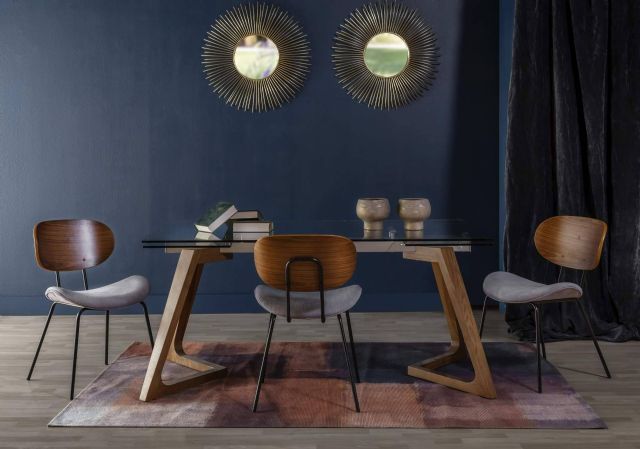 Por ejemplo, el modelo de mesa de comedor extensible Mountain es compatible con un estilo escandinavo o moderno. Esta está compuesta por una tapa de cristal templado transparente y 4 patas de madera de fresno en color blanco lacadas. Además, cuenta con dos paneles que pueden ser desplegados para ampliar la superficie del mueble.