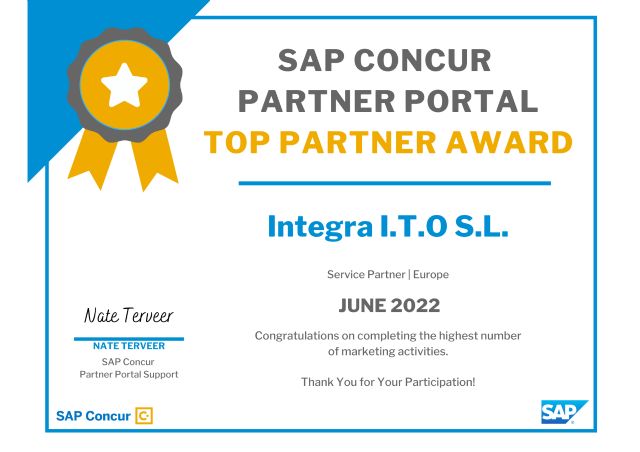 La empresa de gestión de recursos humanos Integra, del grupo empresarial HR Path, ha obtenido el certificado de Top Partner por parte de SAP Concur. Este reconocimiento supone una garantía de excelencia para la compañía e implica un plus de confianza como partner autorizado para implantar esta solución