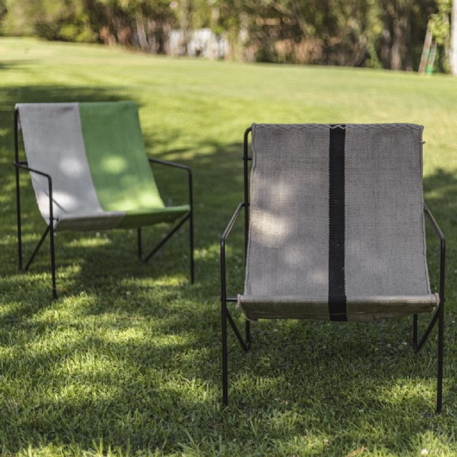 En la colección se han cuidado todos los detalles, apostando por materiales reciclados y sostenibles en los tejidos. Por su parte, la estructura de estas sillas es de hierro, con un acabado en epoxi, lo que les otorga un plus de resistencia.