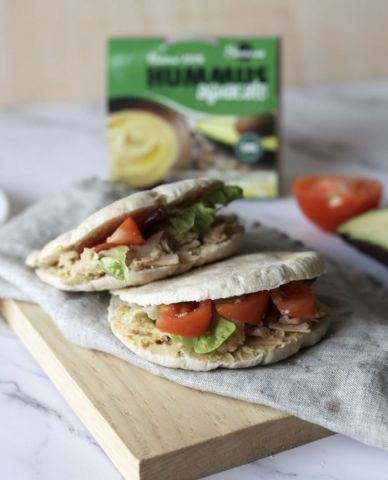 Elaboración: Para que sea más jugoso, lo mejor es untar una cucharada de hummus dentro del pan, y después poner la lechuga, el pollo o la carne vegana, junto a los tomates cherry partidos por la mitad. Por encima, otra cucharada de hummus de aguacate y a disfrutar. Un plato sencillo y delicioso que permite reponer fuerzas y que aporta, hidratos y proteínas para tener un día lleno de energía.