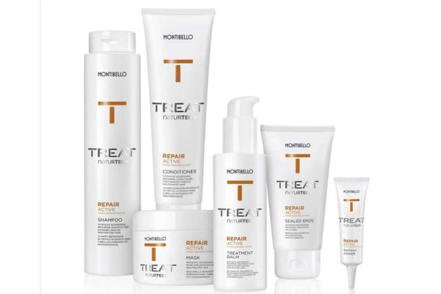 La segunda fórmula es Montibello Repair Active Treatment Balm de 150 ml, un hidratante intensivo indicado para cabellos deshidratados y dañados que requieren una reparación de su barrera protectora con propiedades que proporcionan suavidad y facilitan el peinado. El tercer producto es Montibello Treat Champú Reparador de 300 ml, un limpiador capilar nutritivo que restaura la flexibilidad y el brillo con una reparación que trata las agresiones físicas, químicas y medioambientales a las que se expone el cabello diariamente.