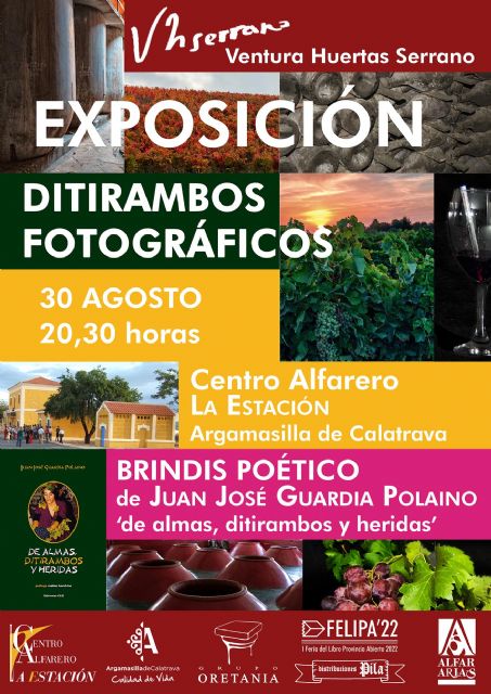 El vino como conductor principal entre la exposición fotográfica de Ventura Huertas Serrano (Vhserrano) "Ditirambos fotográficos" y el nuevo poemario del valdepeñero Juan José Guardia Polaino "De almas, ditirambos y heridas", que maridarán con las vasijas de barro que el Centro Alfarero La Estación de Argamasilla de Calatrava ha preparado para que, el próximo 30 de agosto a las 20,30 horas, se pueda acompañar el brindis poético de Polaino, con el vino de las 'Tierras del Quijote', que Distribuciones Pila ha donado.