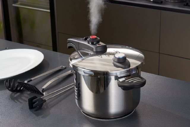 La nueva G-Sola se caracteriza también por su alta capacidad de hasta 8 litros y sus 24 cm de diámetro, lo que permite un cocinado de amplias dimensiones. Con ella Inoxibar completa el tercer tamaño de olla a presión, además de los de 4 y 6 litros que existían desde el inicio.