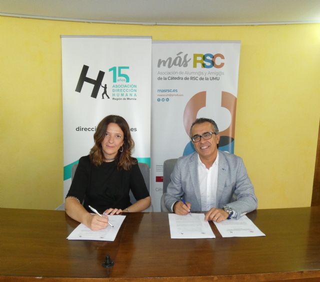 La Asociación Dirección Humana de la Región de Murcia y Más RSC, la Asociación de Antiguos Alumnos y Amigos de la Cátedra de Responsabilidad Social Corporativa han firmado un convenio de colaboración favorecer el desarrollo y la mejora de las empresas de nuestra región en el ámbito de la responsabilidad social y de la sostenibilidad.
