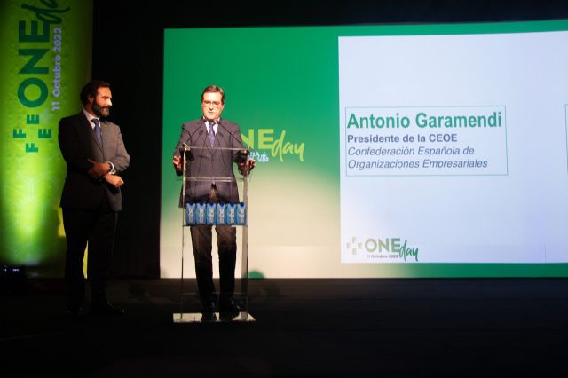 Antonio Garamendi, presidente de CEOE clausuró el acto elogiando el modelo capilar de la farmacia comunitaria que contribuye a evitar la España despoblado y mostro su apoyo a los empresarios del sector representados en FEFE.
