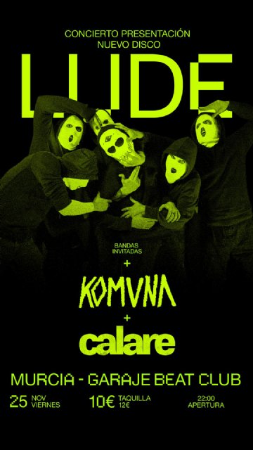 “Lapso” será presentado en primicia y en un único concierto en la sala Garaje Beat Club de Murcia. Habrá muchas sorpresas en el escenario y contarán con colaboraciones. Además, las bandas que acompañarán a Lude son Komvna Kabra y Calare.