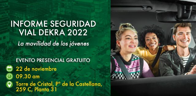DEKRA España presentará por séptimo año consecutivo su Informe de Seguridad Vial DEKRA en Madrid el próximo 22 de noviembre. Este año, la temática del informe se centra en los jóvenes conductores de entre los 18 y 24 años. Este grupo de edad supone, junto a los mayores de 65 años y los motociclistas, un grupo de riesgo importante en el tráfico rodado