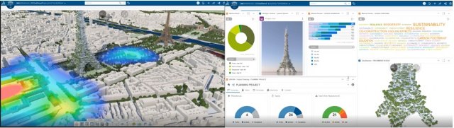 Partiendo de un diseño exclusivo del arquitecto Nicolas Laisné, el equipo utilizó la plataforma 3DEXPERIENCE para crear un gemelo virtual de la torre: un jardín vertical adornado con 18.038 árboles (lo que corresponde al número de partes metálicas de la Torre Eiffel), 5.500 metros cuadrados de invernaderos y cobertizos de jardín, 451 especies vegetales y 200 jardines experimentales y compartidos. Al darle vida al gemelo virtual con insights en tiempo real y basados en datos de toda la cadena de valor, el equipo demostró que los grandes proyectos de infraestructuras pueden construirse de forma más sostenible gracias al diseño colaborativo entre todas las partes interesadas, la optimización de las operaciones y la gestión de los recursos, además de la fabricación de materiales con bajas emisiones de carbono, la planificación logística sostenible y la construcción productiva.