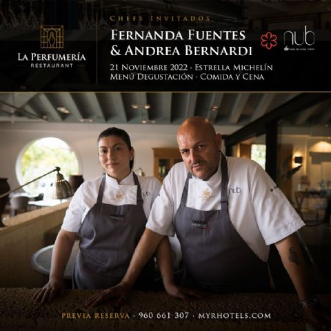 Fernanda Fuentes es la única chef chilena con una estrella Michelin. Fuentes administra junto al chef italiano Andrea Bernardi, su marido, el restaurante NUB en Costa Adeje (Santa Cruz de Tenerife). Los dos chefs ofrecerán un menú degustación maridado el próximo 21 de noviembre en los servicios de comida y cena en La Perfumería