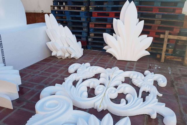 Para la elaboración de los ornamentos tematizados para la cabalgata de reyes, la empresa usa como material principal el poliestireno expandido de alta dada las propiedades y las ventajas que este posee. Y es que no solo es económico, sino muy versátil e ideal para moldear con él prácticamente cualquier tipo de ornamento.