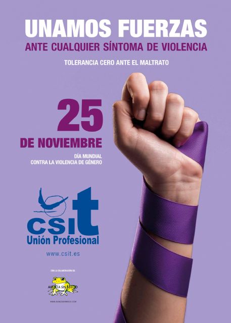 DesdeCSIT UNIÓN PROFESIONALcontinuaremos apoyando todas aquellas iniciativas con voluntad de luchar contra esta lacra social, a fin de lograr quenoexistan barreras ideológicas que supongan freno alguno en la lucha común contra la violencia sexista.