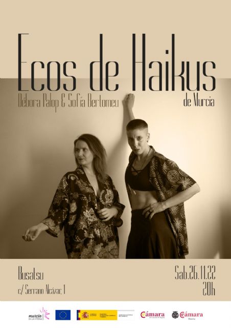 Murcia en la Vitrina vuelve a ocupar los escaparates del centro de Murcia acogiendo el día 26 a 25 actuaciones de música, danza, teatro, poesía... Y entre estas escenas encontraremos a Débora Palop & Sofía Bertomeu formando un dúo de experimentación sonora en formato 'Spoken word'. El espectáculo está compuesto de la lectura de haikus relacionados con la Región de Murcia, acompañados de sonidos ambientales y ritmos relacionados con los poemas japo-murcianos que se van a recitar.