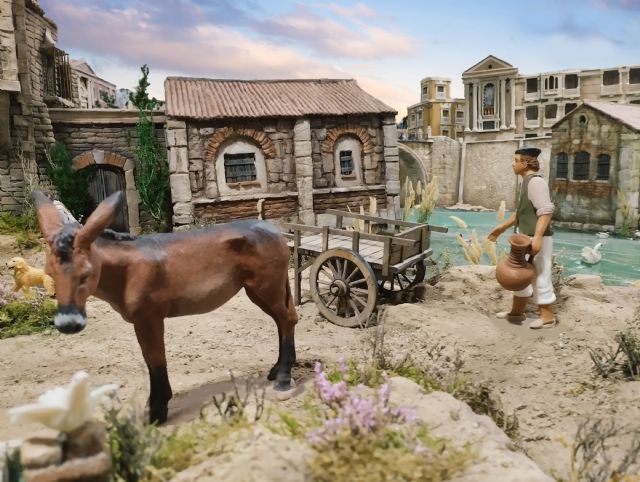 En cuanto al Belén, su escenario ha sido transformado para acoger una postal inspirada en la Murcia de principios del Siglo XX con una ciudad cuidada en cada detalle, que reproduce la escena del nacimiento en el margen del río Segura, teniendo como telón una imagen panorámica de la ciudad y el Puente Viejo.