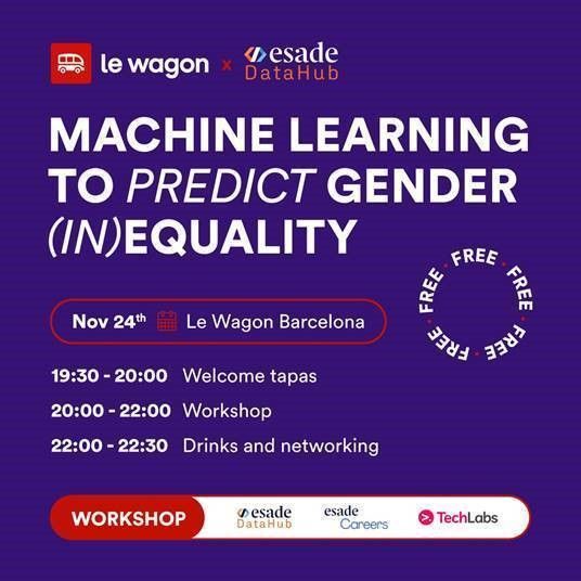 Bajo el título "Machine Learning to Predict Gender Equality", el próximo 24 de noviembre tendrá lugar en Barcelona un workshop dedicado a mostrar los fundamentos del aprendizaje automático, así como su uso para predecir la brecha salarial de género. De forma práctica, se podrá profundizar en estos conceptos de la mano de los expertos de Le Wagon, escuela líder de habilidades tecnológicas que enseña a sus estudiantes los conocimientos necesarios para conseguir la carrera de sus sueños en el sector tecnológico, que organiza el evento junto a la escuela de negocios Esade.