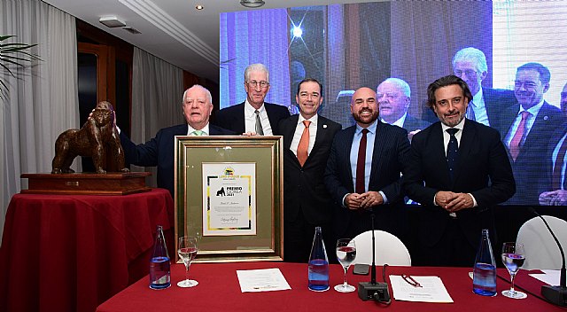 Imagen: Entrega del Premio Gorila.De izq. a der.: Wolfgang Kiessling, fundador de Loro Parque, el galardonado Brad F. Andrews, Christoph Kiessling, vicepresidente de Loro Parque, Marco González, alcalde de Puerto de la Cruz, y Gustavo Matos, presidente del Parlamento de Canarias.