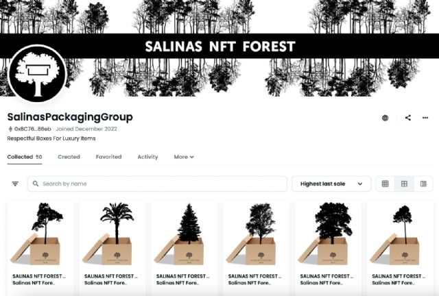 Salinas Packaging Group, empresa líder en el packaging rígido para los sectores premium y lujo en España, lleva años desarrollando una estrategia ESG y recibe 2023 con SALINAS NFT FOREST. Esta acción le permite regalar compensación de emisiones CO2 a sus clientes y grupos de interés, convirtiendo en una colección limitada de NFTs la reforestación de una hectárea de bosque calcinado perteneciente a un territorio forestal en 2019.