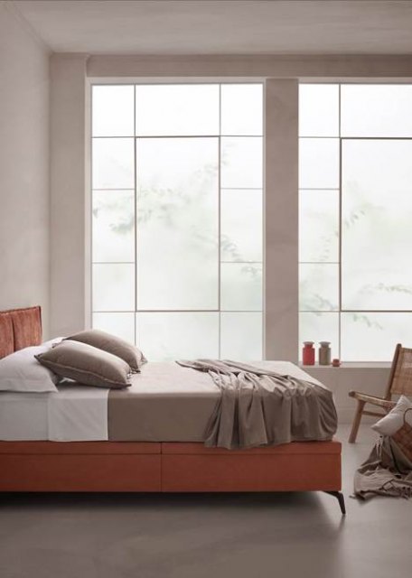 En esta ocasión, destacamos el canapé abatible Filo. ¿Quién dijo que una base abatible no podía ser elegante? Nos limitamos a las líneas puras, rectas y sencillas. Filo dibuja en su tapa una delicada cavidad funcional como tirador. La ausencia de elementos superficiales hace que se aprecie la limpieza de los tejidos y sus texturas.