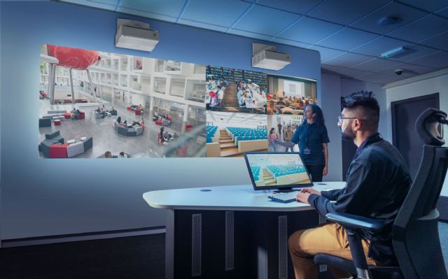 El proyector CMZ50 ofrece imágenes de 80 pulgadas a una distancia aproximada de 1 cm, lo que permite a los ponentes trabajar con seguridad sin tener que preocuparse por las sombras en la pantalla o por ser deslumbrados por la luz de la óptica, y proporciona a los participantes in situ y en remoto una visión nítida del contenido detallado. Para evitar la luz intensa, la fuente de luz láser del CMZ50 proporciona 5.200 lúmenes con un contraste dinámico de 3.000.000:1, mientras que la resolución WUXGA facilita la lectura de texto fino. Dado que los contenidos en pantalla panorámica son cada vez más habituales, el proyector admite señales de entrada de 2560x1080 (21:9) y 3240x1080 (27:9), así como señales de entrada 4K, lo que lo hace ideal para salas de videoconferencia que utilicen soluciones como Microsoft Teams Rooms.