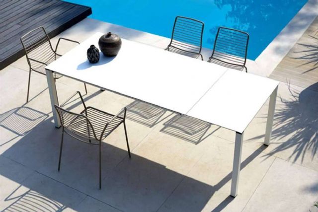 Dependiendo del espacio, se pueden usar diferentes materiales para las sillas y mesas. Entre estos, las de aluminio son ligeras, por lo que son fáciles de transportar, pero a la vez tienen cualidades robustas, a las que no afectan la lluvia o los rayos del sol si se dejan en el exterior. Además, no requieren mucho mantenimiento, se pueden limpiar en caso de humedecimiento y son resistentes a la corrosión.