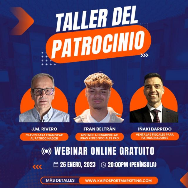 El próximo jueves 26 de enero a las 20:00 (una hora menos en Canarias) Iñaki Barredo, Fran Beltrán y José Manuel Rivero desarrollarán un Taller de Patrocinio Deportivo.