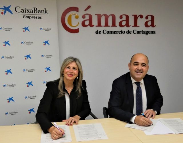 La colaboración ha sido suscrita por la directora territorial de CaixaBank en la Región de Murcia, Olga García, y el presidente de la Cámara de Comercio de Cartagena, Miguel Agustín Martínez.