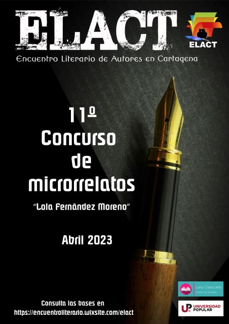 Los organizadores del Encuentro Literario de Autores en Cartagena y la Universidad Popular de Cartagena convocan el 11° Concurso de Microrrelatos ELACT "LOLA FERNÁNDEZ MORENO", como homenaje a una de las personas que más hizo por difundir la literatura en la ciudad de Cartagena, con arreglo a las siguientes