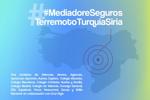 Las organizaciones de la mediación Adecose, Aemes, Aprocose, Apromes, Aunna, Cojebro, Colegio de Alicante, Colegio de Barcelona, Colegio de Córdoba, Huelva y Sevilla, Colegio de Madrid, Colegio de Valencia, Consejo General, E2k, Espabrok, Fecor, Newcorred, Senda y Willis Network han puesto en marcha una ACCIÓN SOLIDARIA de recaudación de fondos, con la colaboración de Cruz Roja, para prestar asistencia a las víctimas del reciente TERREMOTO OCURRIDO EN TURQUÍA Y SIRIA.
