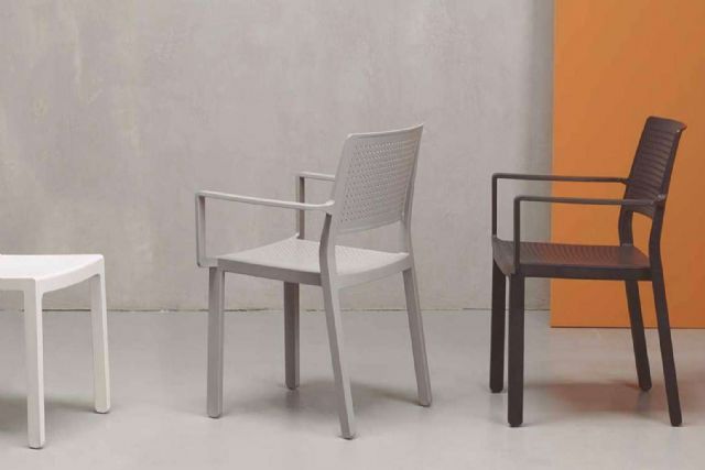 Los usuarios pueden elegir entre modelos de sillas con reposabrazos o sillas plegables. También pueden elegir alternativas con asientos y respaldos tapizados. Además, la empresa ofrece el servicio de personalización que permite a los clientes añadir detalles como el logo o nombre del negocio, permitiéndoles la identificación de su marca en cada espacio del restaurante o bar.