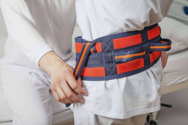 Entre las soluciones ofrecidas, se encuentra el cinturón de movilización, un dispositivo clave para terapeutas y cuidadores en las tareas de transferencia de pacientes de forma segura y controlada, reduciendo al mínimo el riesgo de lesiones del cuidador y del paciente.