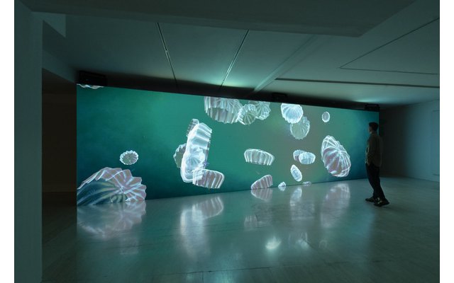De ballenas, una videoinstalación épica que evoca un entorno oceánico psicodélico generado a partir de tecnologías XR ("realidad expandida") fue encargada y estrenada en la edición de 2022 de la Bienal de Venecia, The Milk of Dreams. La pieza está imaginada desde la perspectiva de la ballena y la "variopinta tripulación" de marineros a bordo del ballenero Pequod. Esta compleja obra sitúa el relato de Melville en el contexto de la historia marítima de mediados del siglo XIX, el nacimiento transatlántico del capitalismo moderno y los conflictos sociales de la época. La inmensidad del océano se convierte en símbolo de lo desconocido; los reflejos apuntan a la presencia de perspectivas oblicuas y cuestionan la idea de que cualquier punto de vista es singular o lineal.