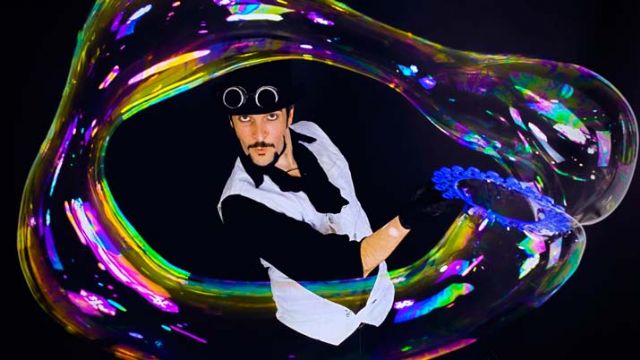 Un espectáculo único en su género, lleno de magia, ilusión y emoción, capaz de sorprender no solo los más pequeños en cuanto la propia estructura de las pompas, dejará boca abierta también los adultos, activando ese mecanismo inconsciente que nos permite de "volver a ser niños" cuando miramos estas esferas iridiscentes.