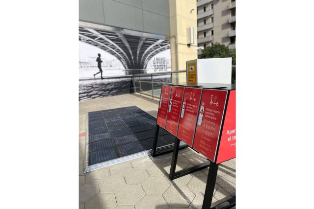 Sumándose a las 8 plazas ya instaladas de TRAP en Westfield la Maquinista, la nueva instalación cuenta con un parking TRAP con espacio para aparcar y cargar 4 patinetes distintos, y con 4 metros cuadrados de placas solares ELVEG que generan energía gracias a sus placas fotovoltaicas que generan energía para poder dar carga a la estación.