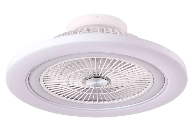 Entre los ventiladores con luz destaca el de serie Mato en colores cuero, níquel y blanco. El mismo está fabricado en metal, ABS y policarbonato, con 5 aspas trasparentes y 6 velocidades. Además, posee tecnología LED integrada, 72 vatios de potencia, 6.120 lúmenes. También incluye memoria de color incorporada y temporizador.