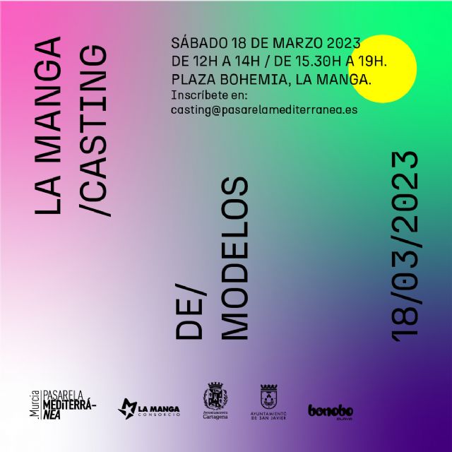 Con la primavera llega la sexta edición de Pasarela Mediterránea, y como punto de partida la celebración del Casting de Modelos el próximo sábado 18 de marzo, que un año más repite en un enclave de excepción, la Plaza Bohemia de La Manga, en horario de 12.00 a 14.00 horas y de 15.30 a 19.00 horas. Los interesados podrán realizar su prueba en cualquier momento dentro de este horario.