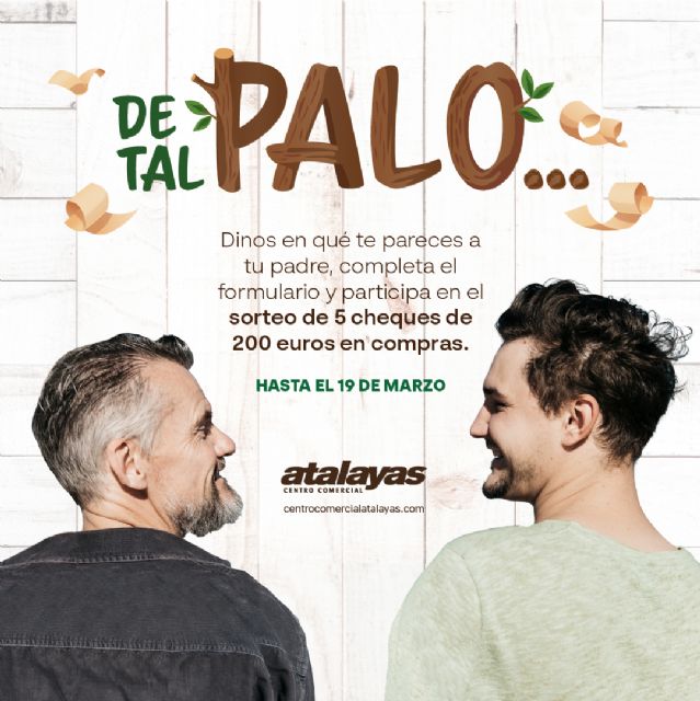 El centro comercial Atalayas va a celebrar el Día del Padre por todo lo alto con sorteos, premios directos y cheques con dinero en compras por un total de 1.000 euros gracias a diversas actividades englobadas en la acción 'De tal palo…'.