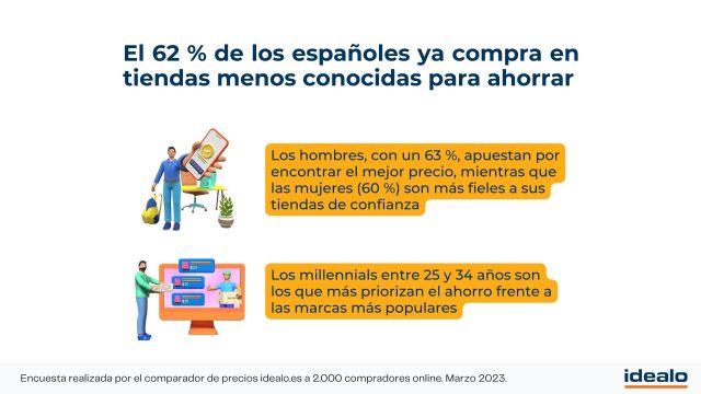 Una tendencia hacia al ahorro generalizada, en la que sin embargo, se aprecian algunas diferencias sociales y demográficas. Según datos de idealo, los hombres apuestan en mayor medida por encontrar los mejores precios (63%) que mujeres (60%), quienes parecen mantenerse más fieles a sus tiendas de confianza. Por edades, son los millennials entre 25 y 34 años los que, con un 69%, priorizan el ahorro, dejando de lado en qué lugar realizar sus compras.