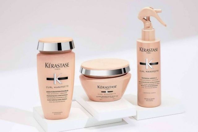La línea especializada de Kérastase, Curl Manifesto, incluye una mascarilla de tratamiento profundo, tratamiento de proteínas, acondicionador nutritivo y crema de peinar para completar el ciclo de tratamiento y proteger el cabello durante el día.