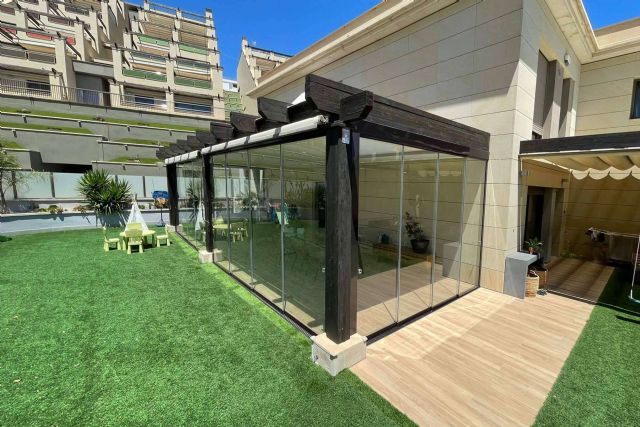 Otra opción es el techo móvil, que permite abrir o cerrar el porche con el uso de paneles de vidrio que permiten conservar la vista del espacio.