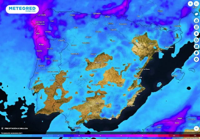 En estas fechas no es fácil determinar en una previsión como esta, a medio plazo, las zonas que se verán más afectadas por un determinado fenómeno, pero sí sabemos lo que habitualmente sucede con este tipo de escenarios en los que predomina el viento del oeste y no hay bajas presiones cercanas. Las lluvias serán relevantes en puntos de Galicia, norte de Portugal y en las sierras occidentales del Sistema Central. Y también podría llover con fuerza en el Sistema Ibérico norte y la Cordillera Cantábrica.