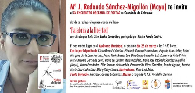 El lema del "XV Encuentro Oretania de Poetas" de la provincia de Ciudad Real, es "Palabras a la libertad". Se celebrará el 25 de marzo, a las 19,30 horas, en el Auditorio de Granátula de Calatrava, y está coordinado por el poeta solanero Luis Díaz-Cacho.