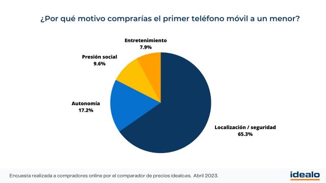 Según un Informe de Unicef, la media de acceso al primer móvil en España es a los 11 años, y partiendo de los datos de idealo, otros motivos de la compra de un teléfono móvil para sus hijos es la presión social (17 %), y el entretenimiento (25 %) en el caso de los menores de 10 años.