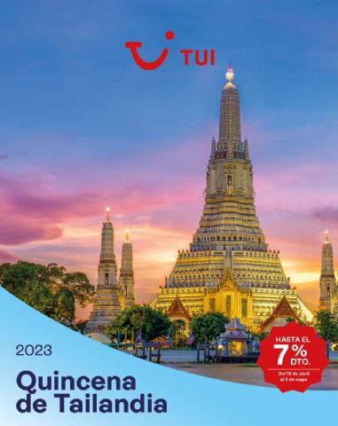 TUI lanza la "Quincena de Tailandia", con hasta un 7% de descuento en toda la programación del destino, incluidas cotizaciones a medida, para reservas realizadas a través es.tui y del departamento de booking.