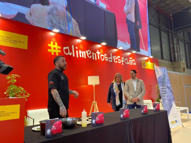 El cocinero Miguel F. Vidal, del restaurante madrileño Morgana, realizó para los asistentes en el espacio Alimentos de España un showcooking y posterior degustación de diversos platos protagonizados por el atún de palangre.