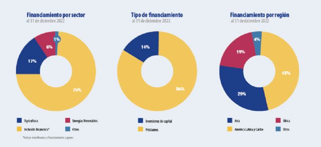 Según los datos del Informe Anual, en África la cartera se contrajo en 2022 un 7,6% debido a las dificultades experimentadas por los mercados africanos como los altos costes de financiación y los crecientes costes de cobertura. La misma suerte ha corrido Asia, con la disminución de los préstamos e inversiones en un 5,8%.