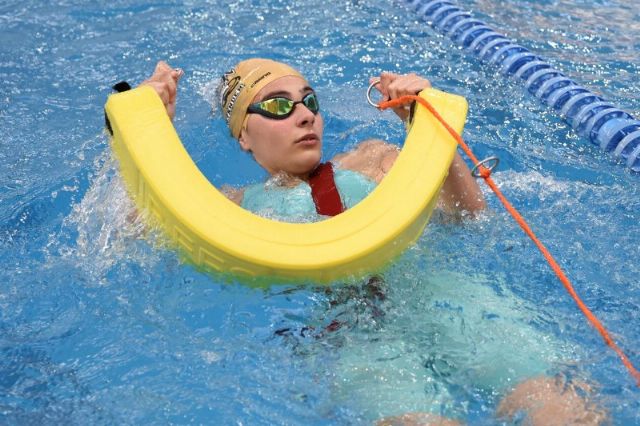 Una socorrista cadete cicla el tubo de rescate en la prueba de 200 metros supersocorrista. Autor: Javier Sánchez-RFESS