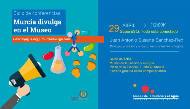 El Museo de la Ciencia y el Agua de Murcia junto con la Asociación de Divulgación Científica de la Región de Murcia (ADCMurcia), continúan su ciclo de conferencias "Murcia Divulga en el Museo", que tiene como objetivo hacer más accesibles los avances en investigación científica a todo tipo de público, de manera amena y divertida. Destacados investigadores y divulgadores compartirán sus conocimientos y novedades en sus áreas de estudio.