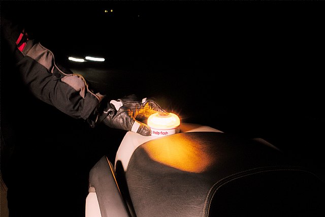 Help Flash explica, además, que este tipo de dispositivos se pueden colocar en la parte trasera de la motocicleta, en el depósito, en la barra del espejo, sobre el asiento e incluso se puede instalar en el propio guardarraíl de la vía. Lo recomendable es colocarlo sobre el depósito de la moto o, en caso de llevar una maleta o baúl, adherirla a la parte superior del mismo.